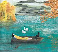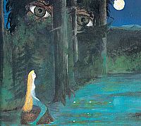 Ich liebe die Welt, dachte er, und Friede überkam ihn. Als er gerade am Einschlafen war, ließ ihn ein unbekanntes Geräusch aufhorchen. Ganz nah dem Ufer plätscherte es wie von einem großen Fischschwanz, und deutlich hörte er ein feines Stimmchen: "Oh, wie schön der Mond scheint!"
